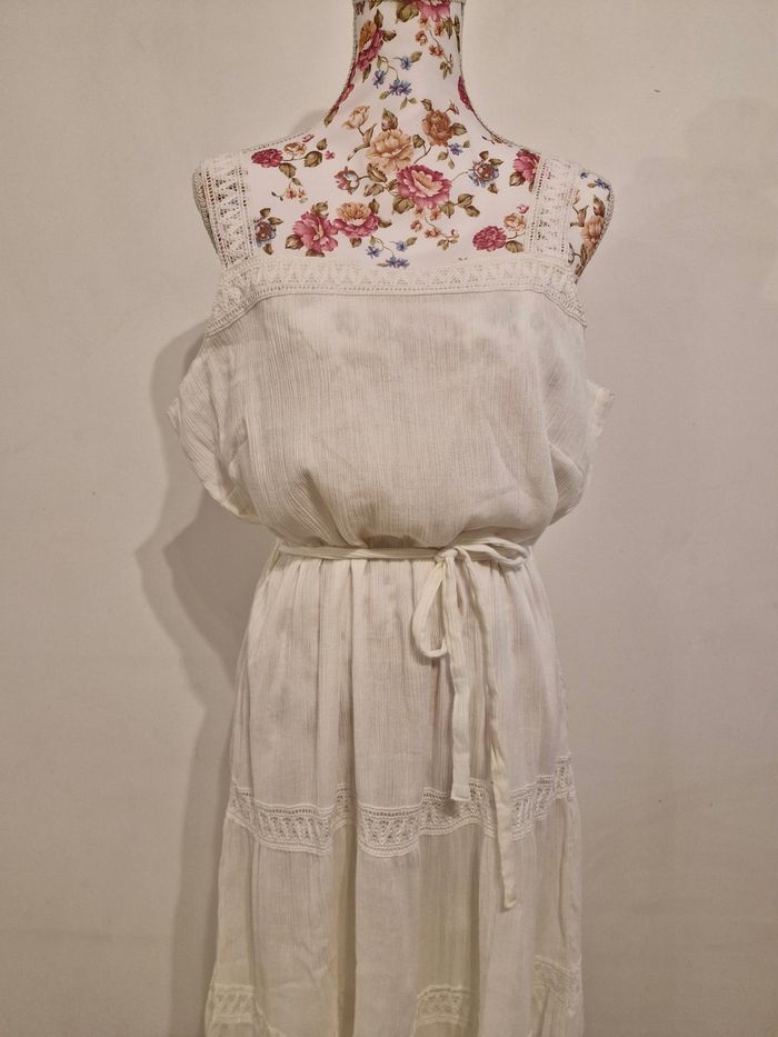 Robe blanche à bretelles avec petite Ceinture pour faire un nœud dans le dos de chez Edmée collections taille 48 Envoit rapide et protéger 🦋 Pour plus de questions n'hésitez pas à m'envoyer un MP 😊
