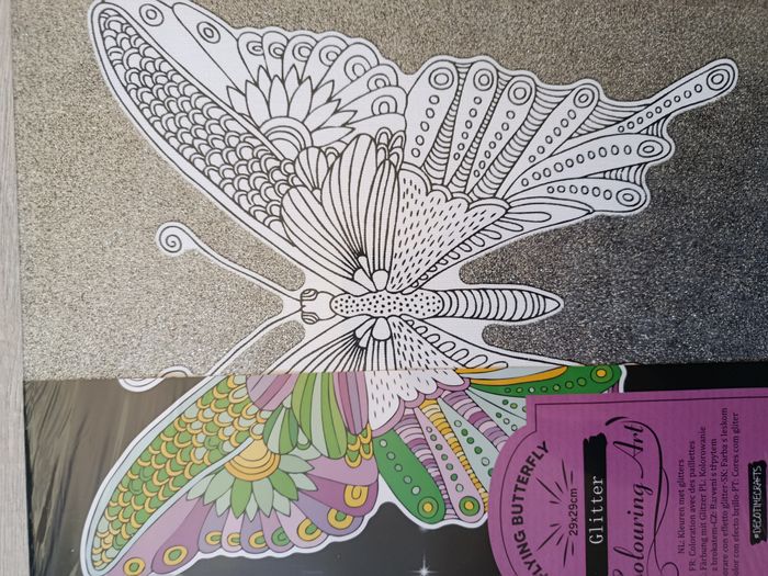 Coloriage sur toile pailletée "papillon". Taille 29x29,5 cm Seul le papillon est à colorier Neuf emballé