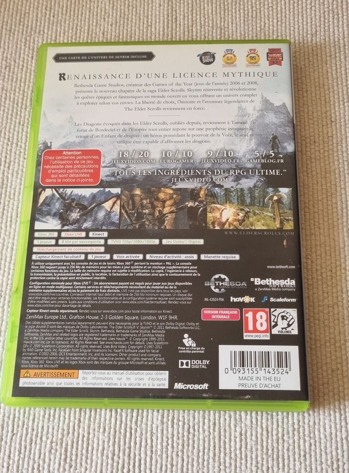 Jeu Xbox 360 The Elder Scrolls V Skyrim Quelques rayures sur le cd et la boite