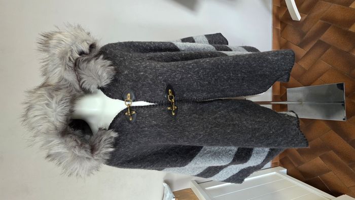 Zara Manteau Veste Cape Poncho col fausse fourrure grise taille