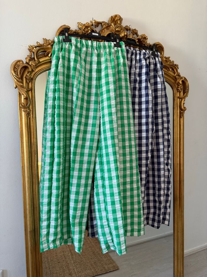 Pantalon large femme était coton, pantalon Vichy - photo numéro 1