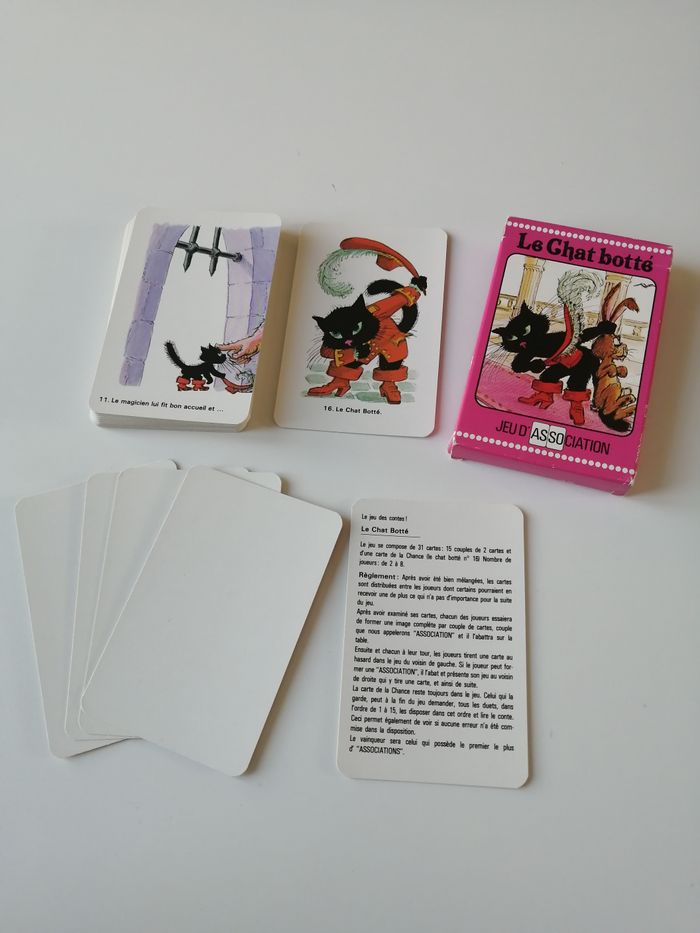 cartes jeu d'association le chat botté vintage jeu de conte et légende avec règle du jeu