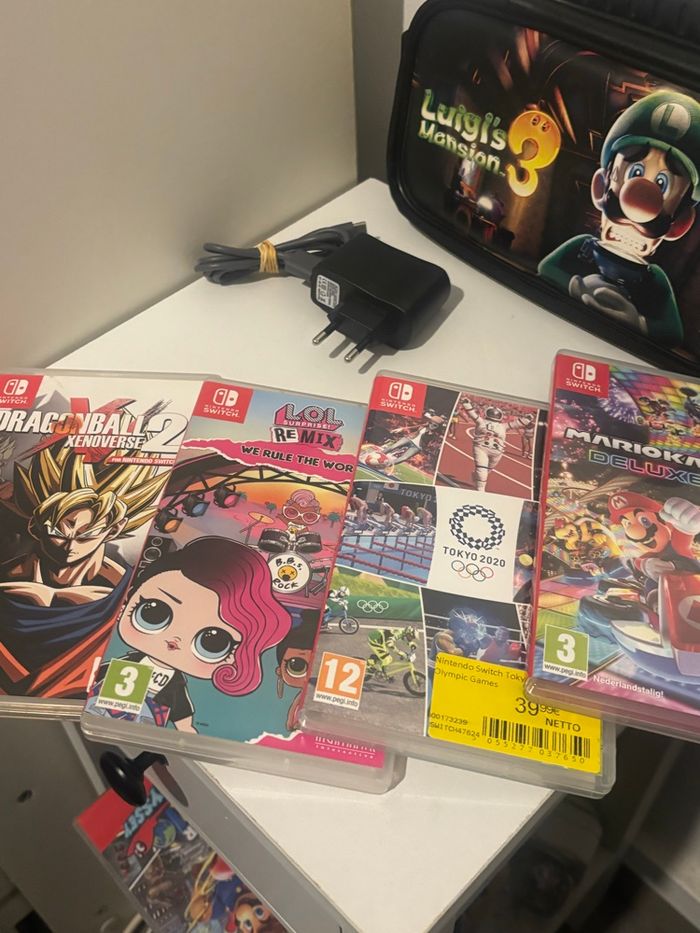 Console Nintendo switch lite bleu édition animal crossing fonctionne parfaitement aucune rayure la batterie et pas neuf mais elle tient quand même vendu avec chargeur non officielle sacoche luig’i mansion + plusieurs jeu