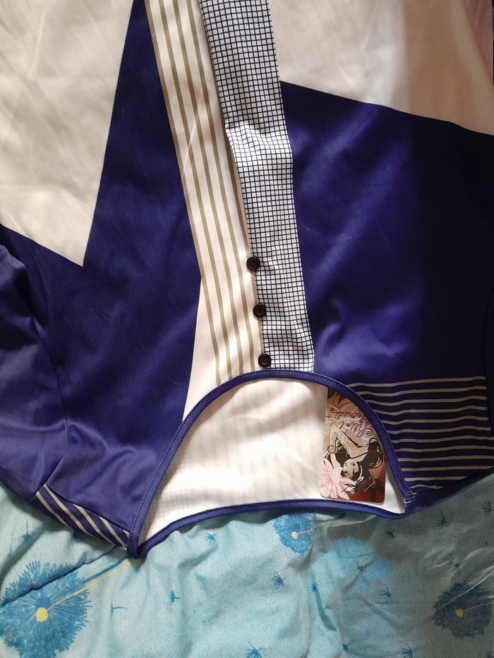 Tres jolie blouse taille 46 de marque Éli Newyork large bleue avec paillettes