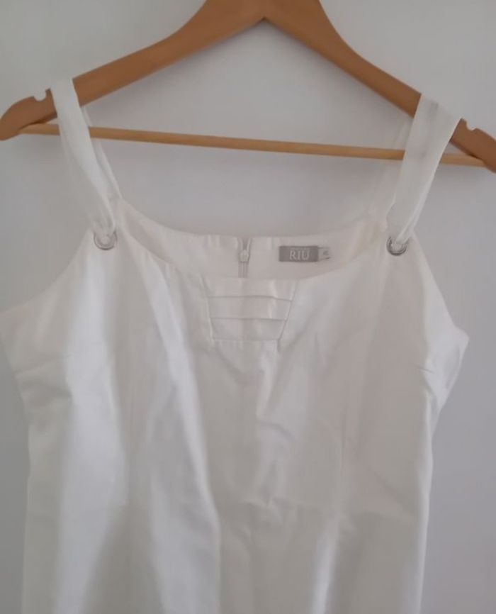 Robe sans manche longueur genoux blanche bleue
