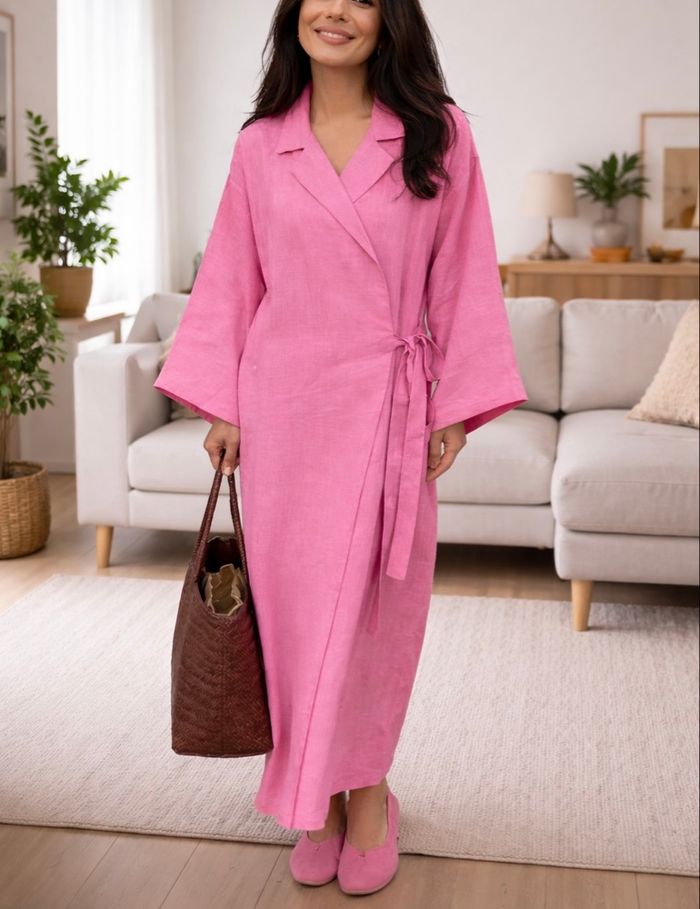 Robe longue rose style kimono, fluide et élégante. Lien à nouer sur le côté, manches larges, très confortable à porter. Idéale pour un look chic ou une occasion spéciale. ✨ ⚠️Neuve avec étiquette ⚠️