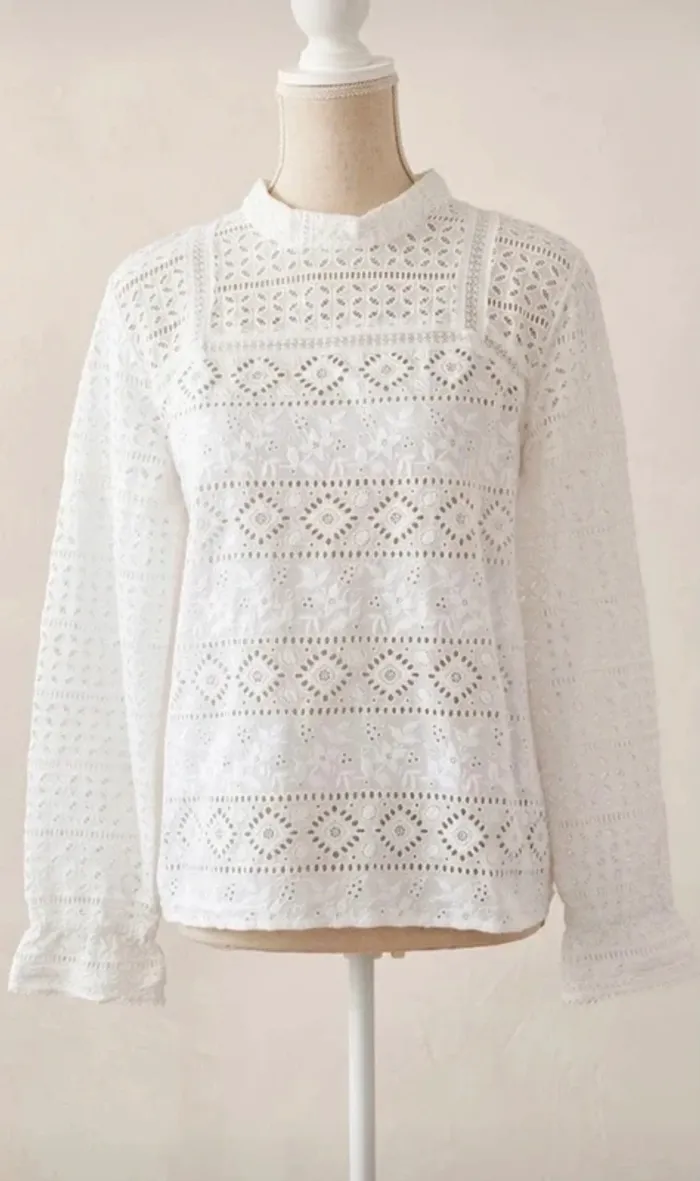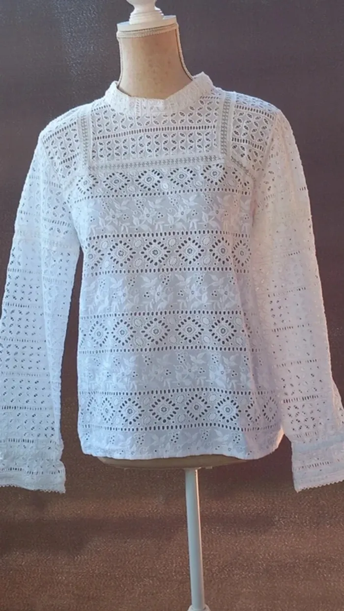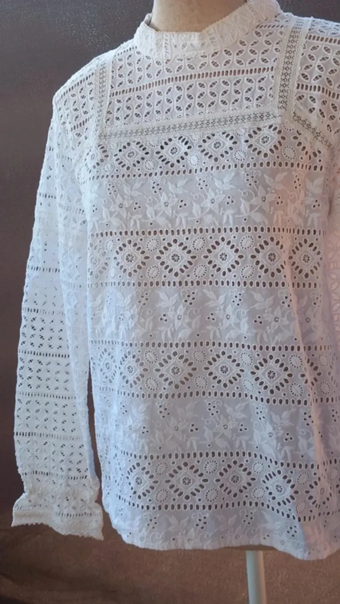 Blouse Cyrillus en Broderie Anglaise Blanche - Taille 40 - NEUVE