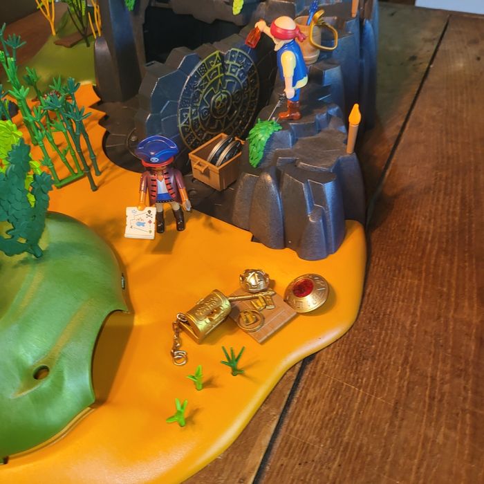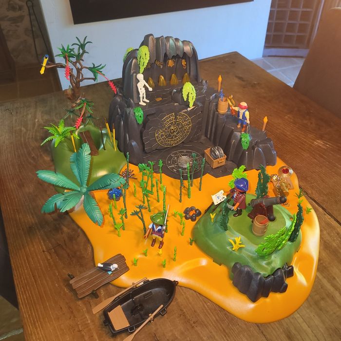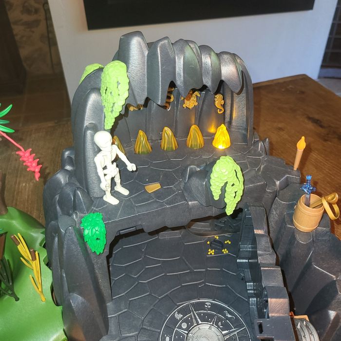 Playmobil set 5134 l'île mystérieuse des pirates non complet il manque quelques pièces Les lumières et le système d'ouverture de la grotte fonctionne les photos servent de descriptif