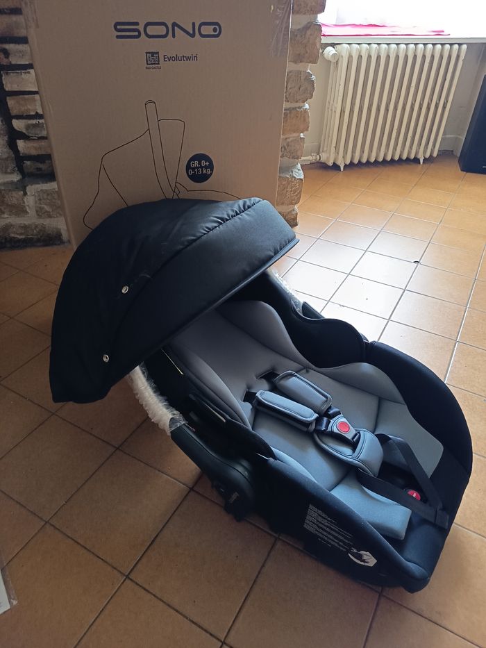 cosy neuf, que je n'ai jamais utilisé. Toute les informations nécessaires sont sur le papier rose dans les photos plus haut. Aussi bien pour la voiture que pour une poussette. Pour enfants jusqu'à 13 kilos. De la marque casualplay.