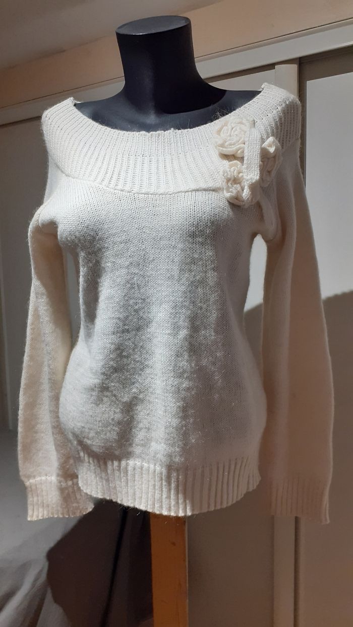 Pull camaïeu écru En acrylique et Mohair T 4 Envoie soigné et rapide