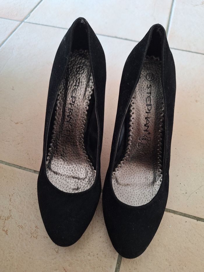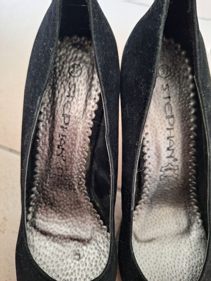 Escarpin à talon en daim noir taille 37 de chez Stephan. Très bon état porter une seule fois.