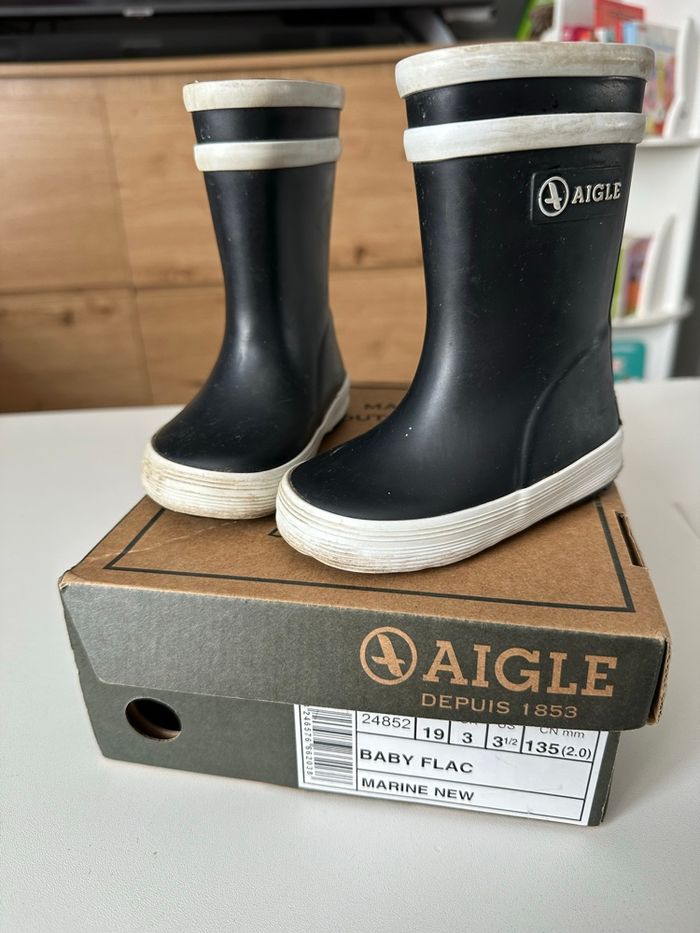Botte de pluie Aigle bleu marine taille 19. 📦 Les envoies sont rapides et très soignés. Les envoies mondial Relay sont effectués dans la journée.
