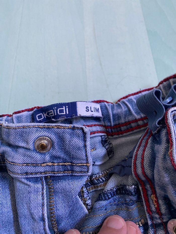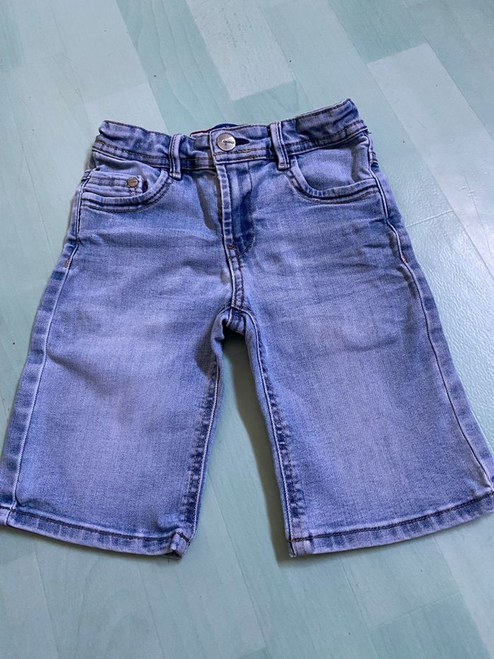 Short -bermuda « Okaïdi slim » 6 ans (116cm) bleu clair, poches devant et derrière, bouton pression, peut-être resserré à la ceinture