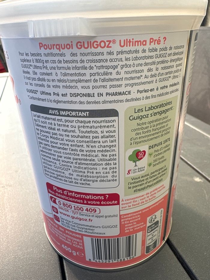 Lait Guigoz - UltimaPré, pour prématurés ou de faible poids.
