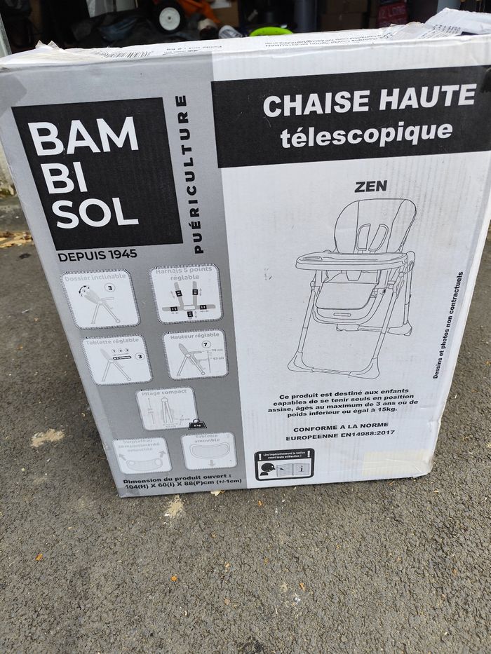 Chaise haute télescopique. Sera expédié dans son carton d'origine (voir photo). Réglable sur plusieurs niveaux (voir photo). Roulette pour faciliter les déplacements. Pliable gain de place. Réglage la plus basse niveau table basse, pratique pour les moments apéritif avec bébé/enfant à côté de soit🙂 s'adapte à toutes les tables. Position semi-allongé+ assise. Acheté neuf sur Amazon en 2022 au prix de 89,40€ ( voir dernière photo). Déhoussable. Une chaise qui a servi mais reste en très bon état🌻☀️🙂