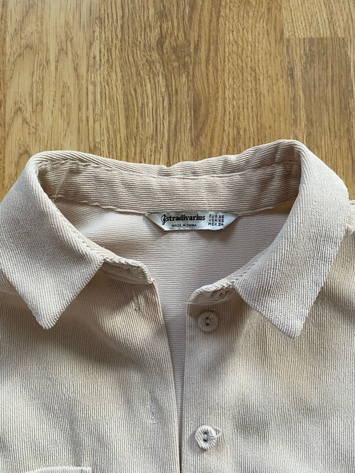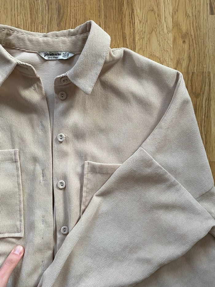 Surchemise en velour Couleur beige Coupe oversize Très peu porté Poches sur le devant Largeur épaules : 57cm Largueur aisselles : 62cm Longueur : 65cm