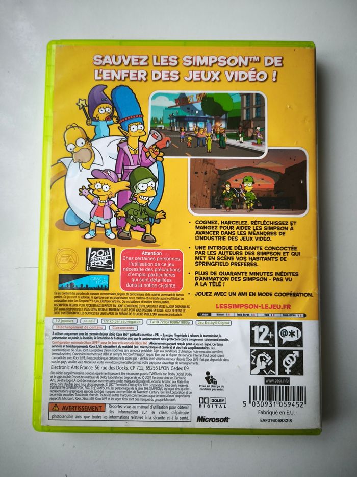 ⚠️ PRIX FERME ⚠️ Jeu xbox 360 les Simpsons complet Le boîtier a des petits défauts d'usage, le disque présente des petites rayures sans incidence sur la lecture du disque, tampon au dos de la jaquette derrière le disque