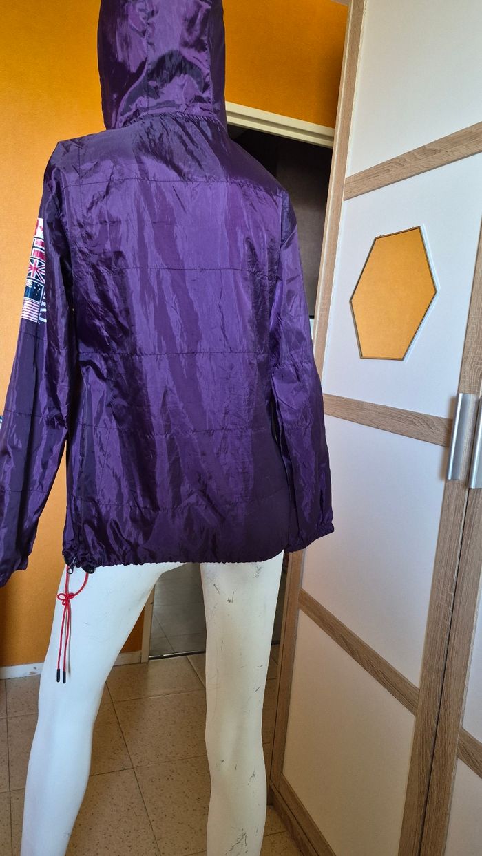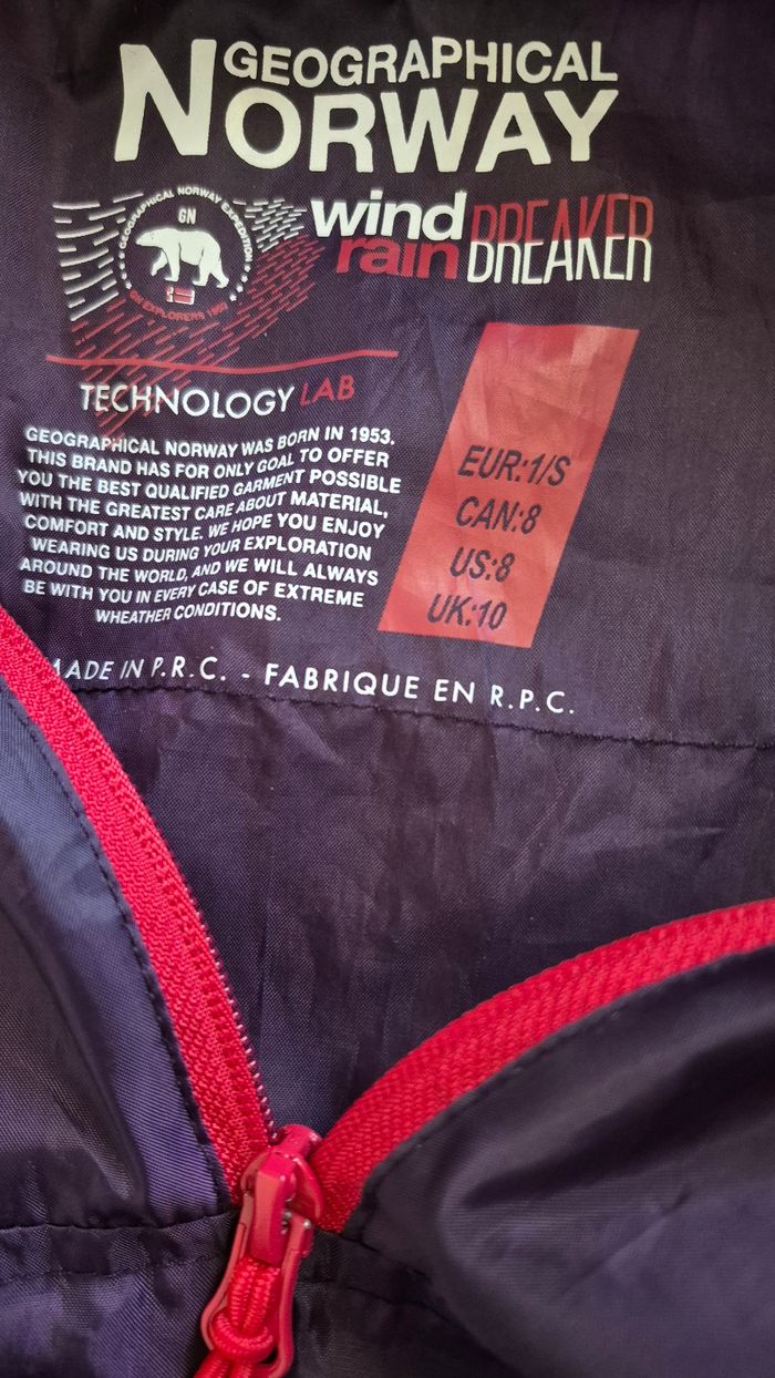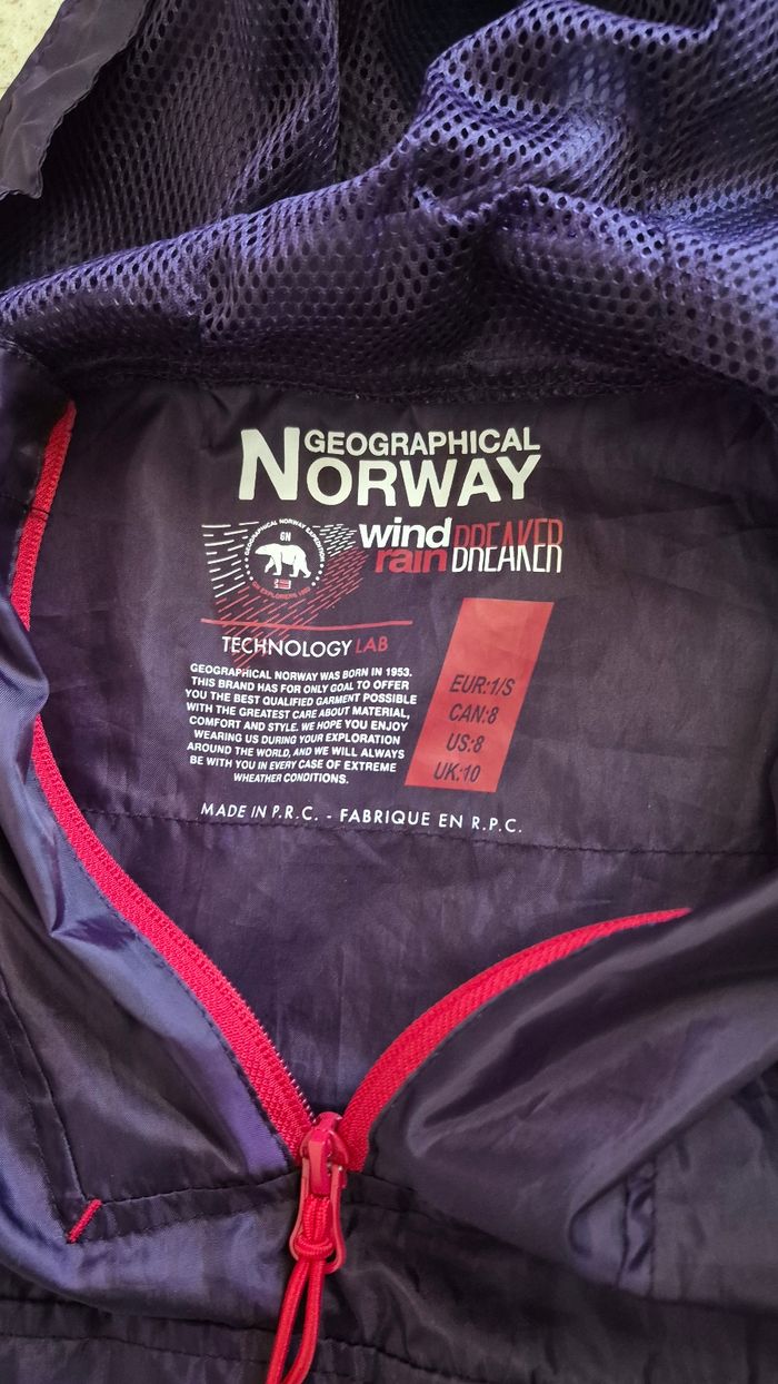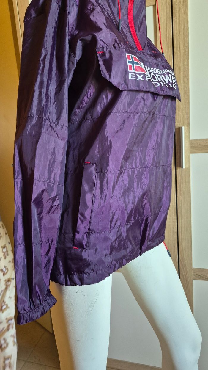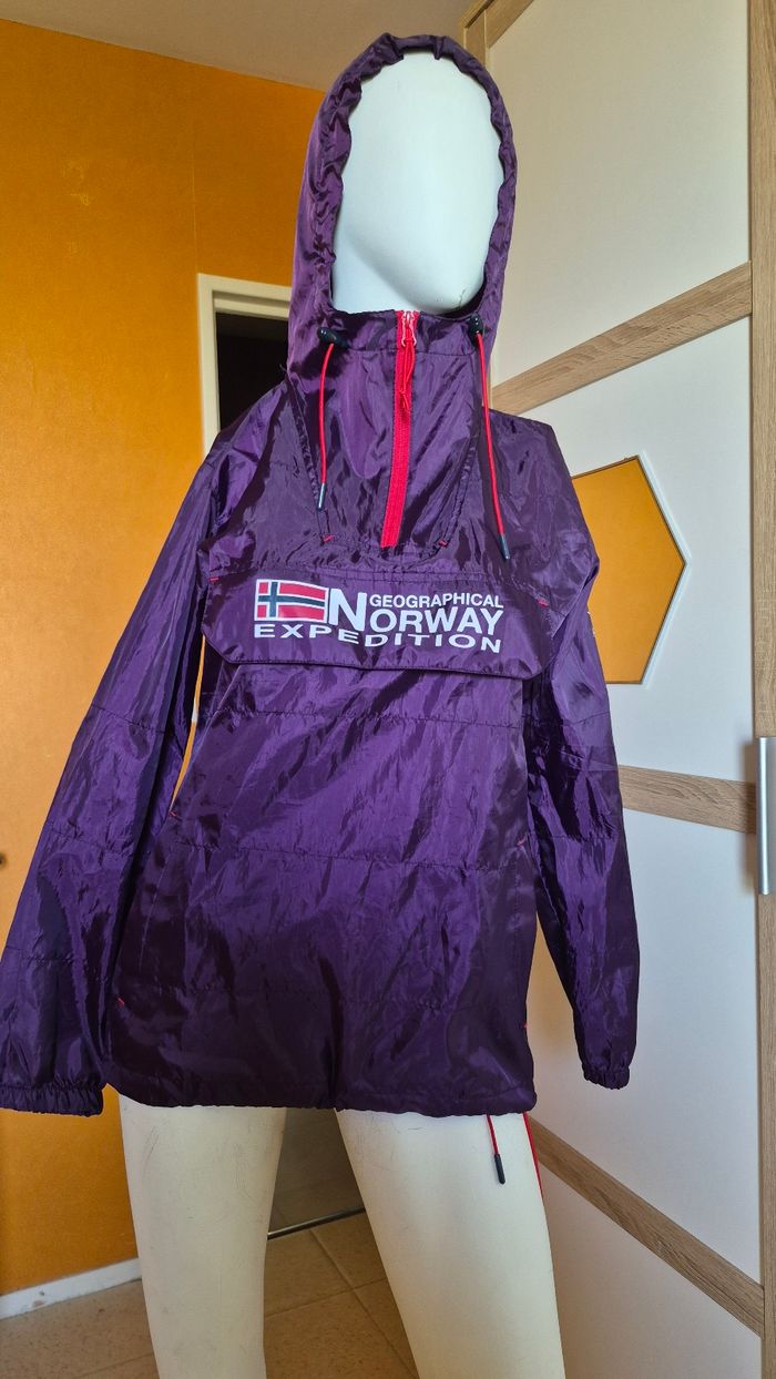 Veste coupe-vent Geographical Norway – État neuf 🟣 Veste coupe-vent de la marque Geographical Norway, idéale pour la mi-saison. Légère, pratique et confortable, parfaite pour se protéger du vent et de la pluie. ✔️ Marque : Geographical Norway ✔️ Taille : S (voir étiquette) ✔️ Technologie wind & rain breaker (coupe-vent et déperlante) ✔️ Capuche intégrée ✔️ Poches pratiques ✔️ Fermeture zippée + cordons de serrage 📦 État neuf Style moderne avec belle couleur violette, facile à porter au quotidien 👍