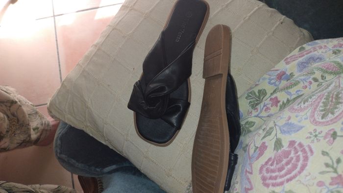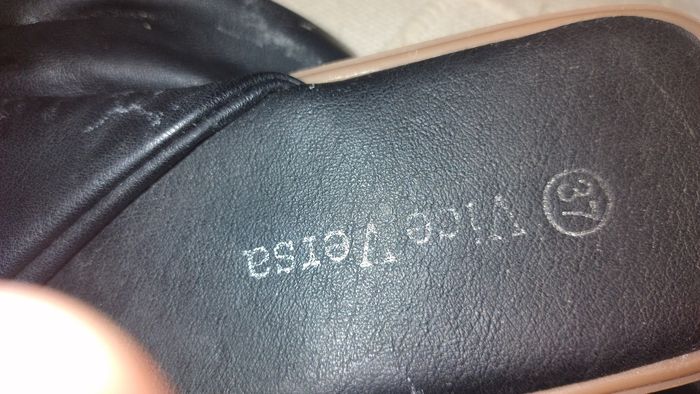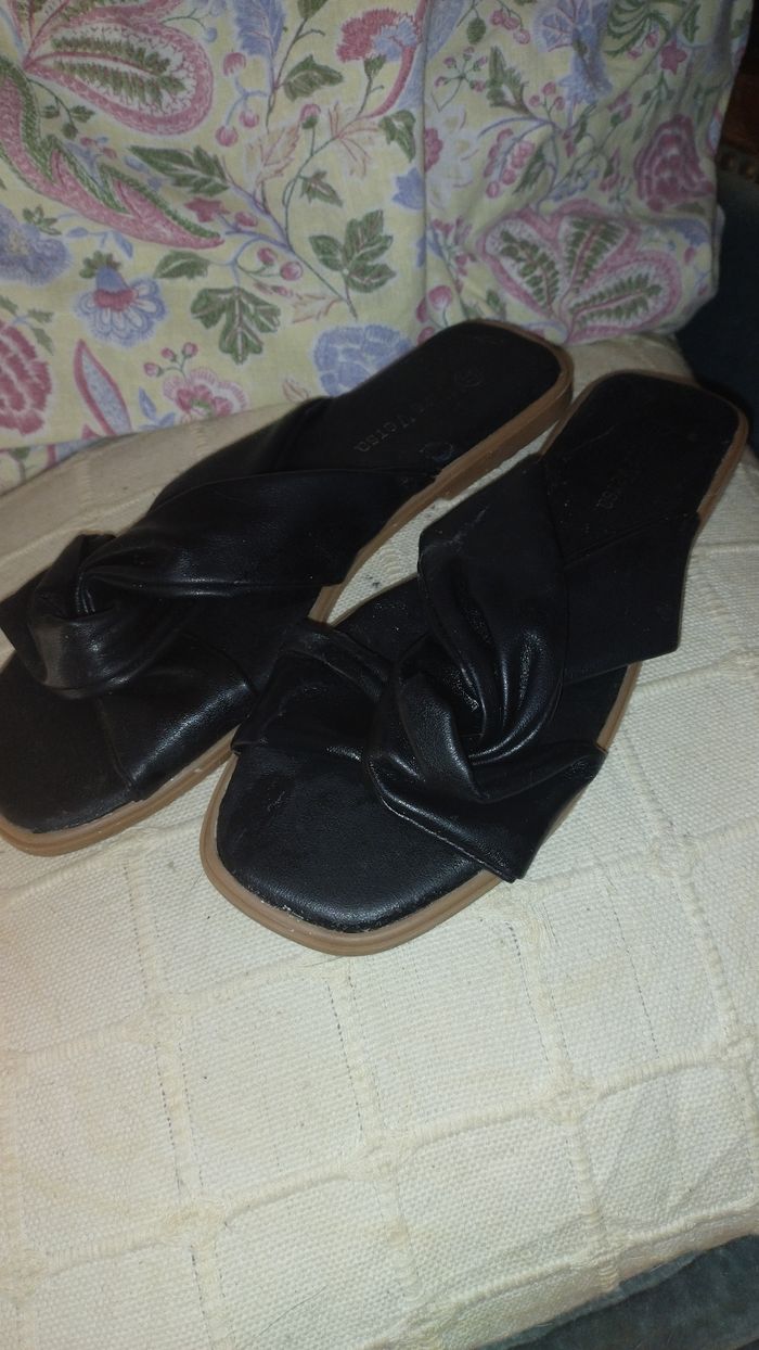 Nus- pieds Semelle plate. Dessus cuir noir Sous pied cuir noir Taille 37. Marque Vice Versa. Très bon état, aucun signe d'usure