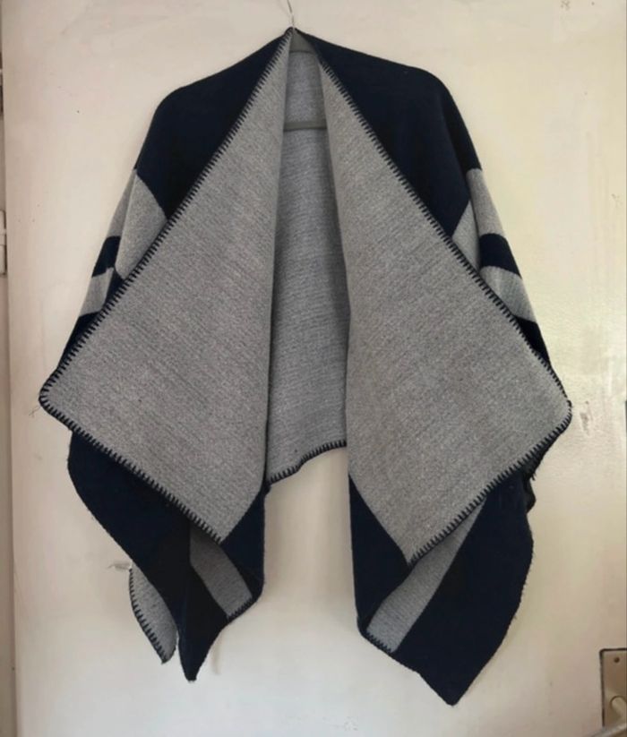 Zara Manteau Veste Cape Poncho col fausse fourrure grise taille