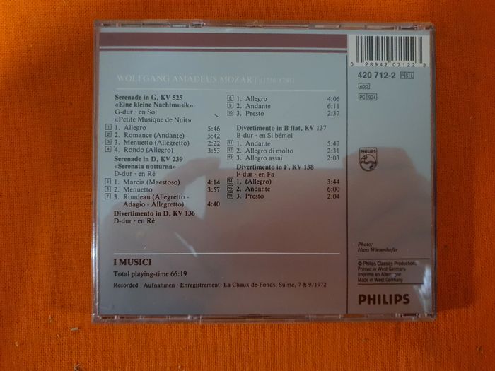 Eine Kleine Nachtmusik / Serenade Notturna / Divertimenti K.136-138 Série : Silver Line Classics Format : CD, Compilation Pays : US Genre : Classical Style : Classical 028942071223 #cd #classique # compilation #mozart Envoi Rapide sous enveloppe bulles Tous mes produits sont vérifiés, restaurés si besoin et nettoyés avant d'être expédiés ❤️ N'oubliez pas de vous abonner pour être averti pour chaque nouvelle annonce