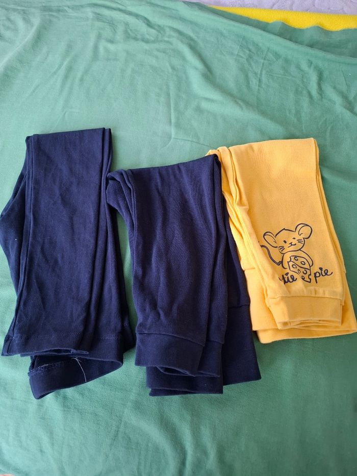 Vends petit pantalon 2 et 3 ans en coton très doux jaune et bleu marine