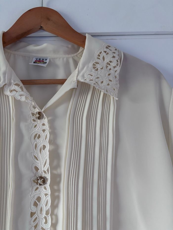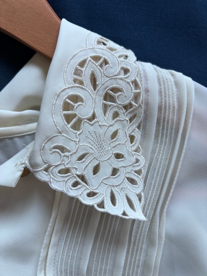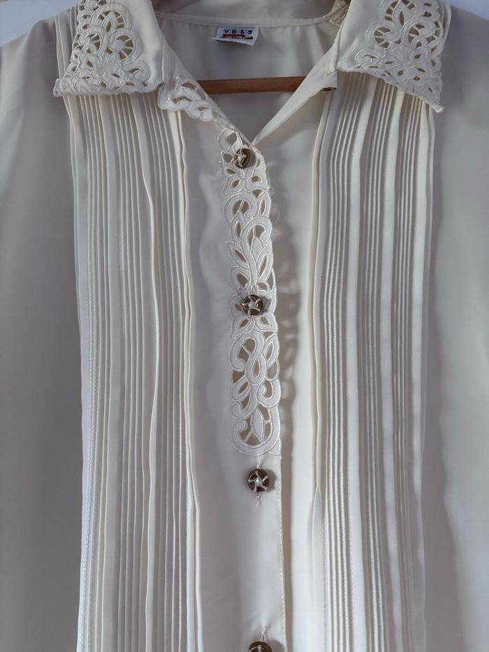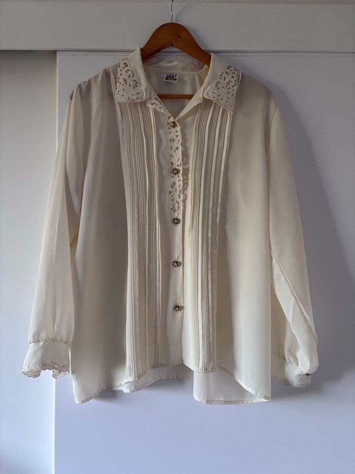 Chemise élégante bleu marine à pointillés pour femme, taille 42