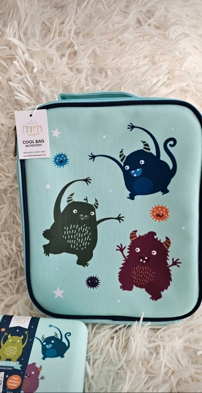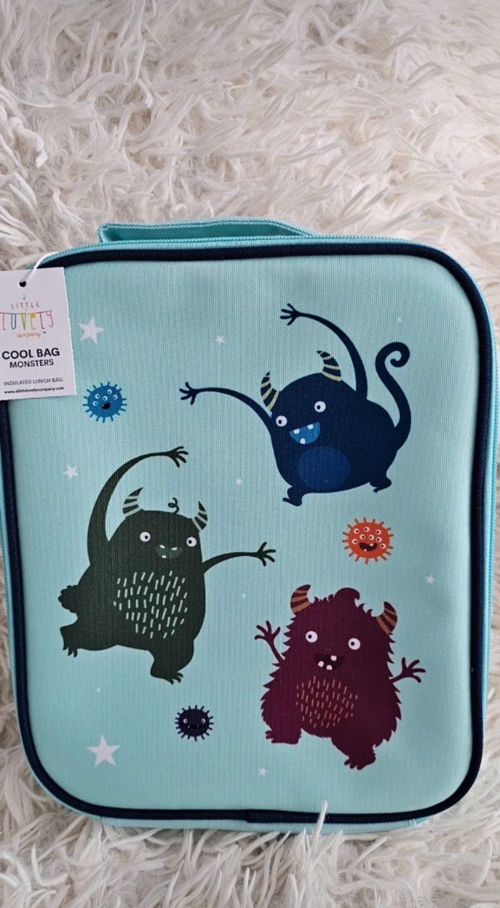 Les monstres gardent les aliments bien au frais Découvrez le sac isotherme Monstres de A Little Lovely Company, idéal pour garder au frais les repas, goûter et pique-nique des petits quand ils vont à l'école ou autres sorties. Dimension : 24×24×9 cm. Boite a gouter assortie avec son élastique pour la maintenir bien fermée.