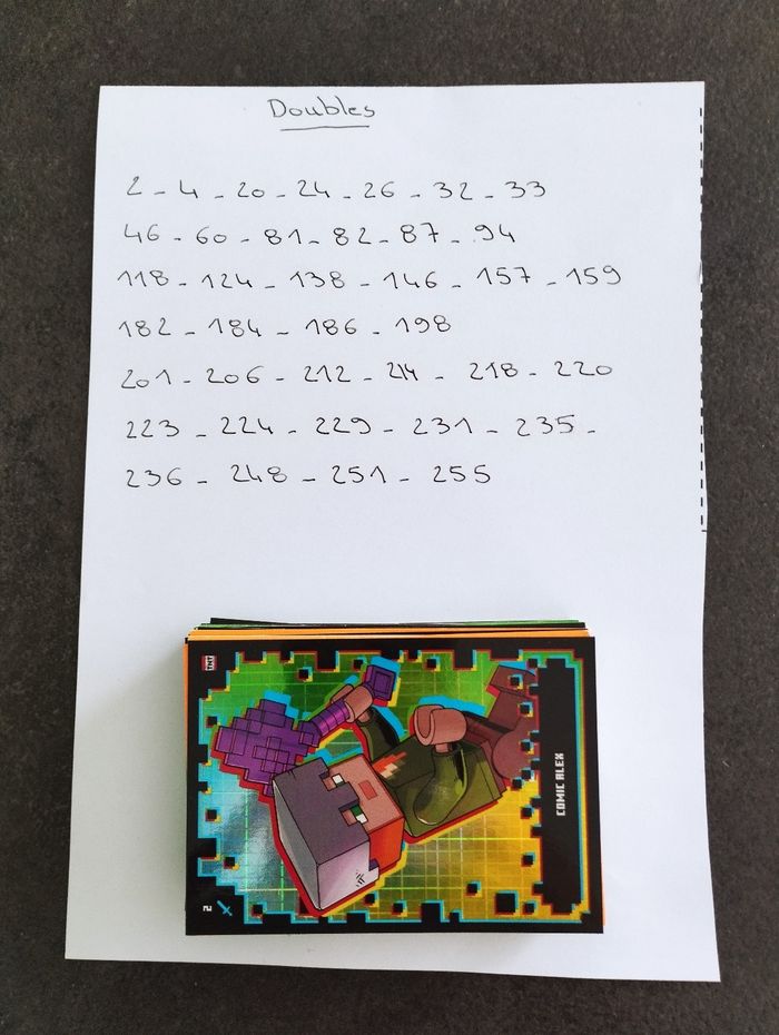 Bonjour. Échange ou vend cartes lego Minecraft série 2 boom bastic