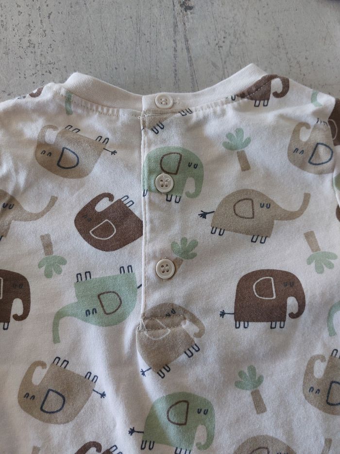 Ensemble t-shirt manches longues avec salopette qui s'ouvre avec pressions en bas de la salopette. Idéale en mi-saison ou l'été c'est assez fin. Jamais porté 18 mois