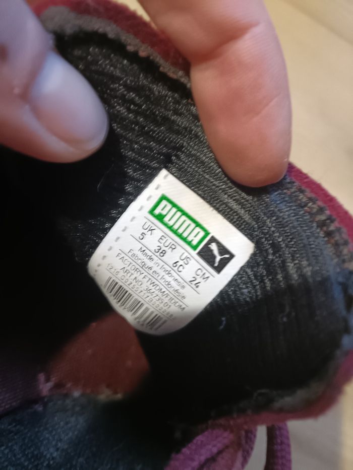 Basket puma suede - bordeaux La couleur est devenue un peu blanche Semelle en très bon état Taille 38
