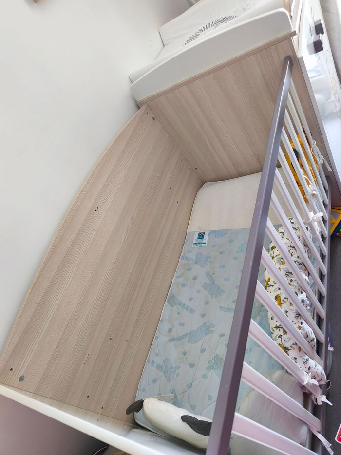 Lit bébé 60x120 + meuble à langer Sauthon + matelas – ensemble chambre bébé