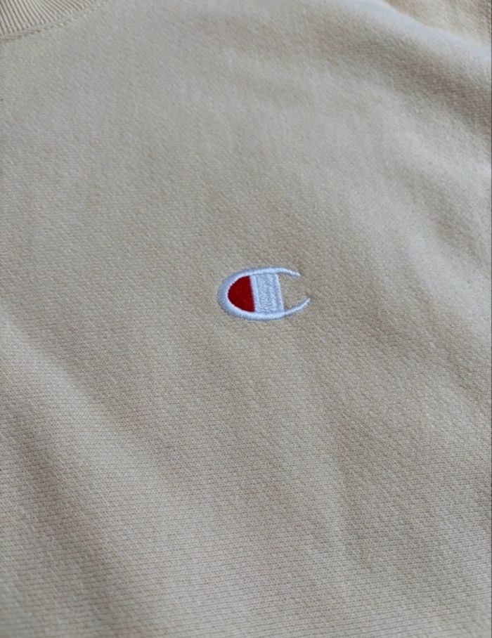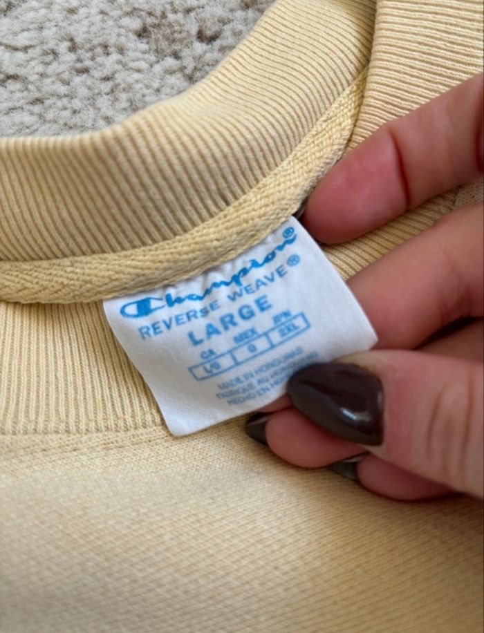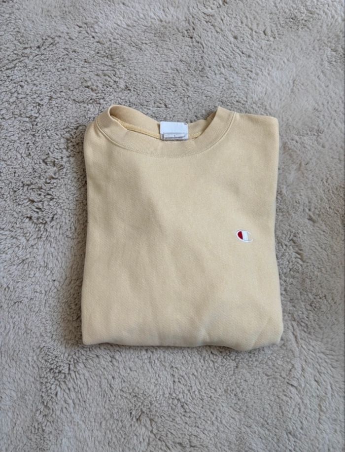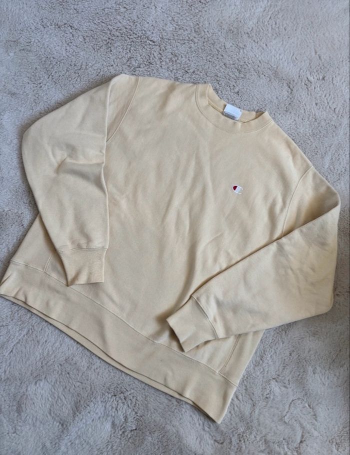 Sweat col rond Champion Couleur jaune pale (se référer à la 3ème photo pour la bonne couleur) Taille L Très bon état