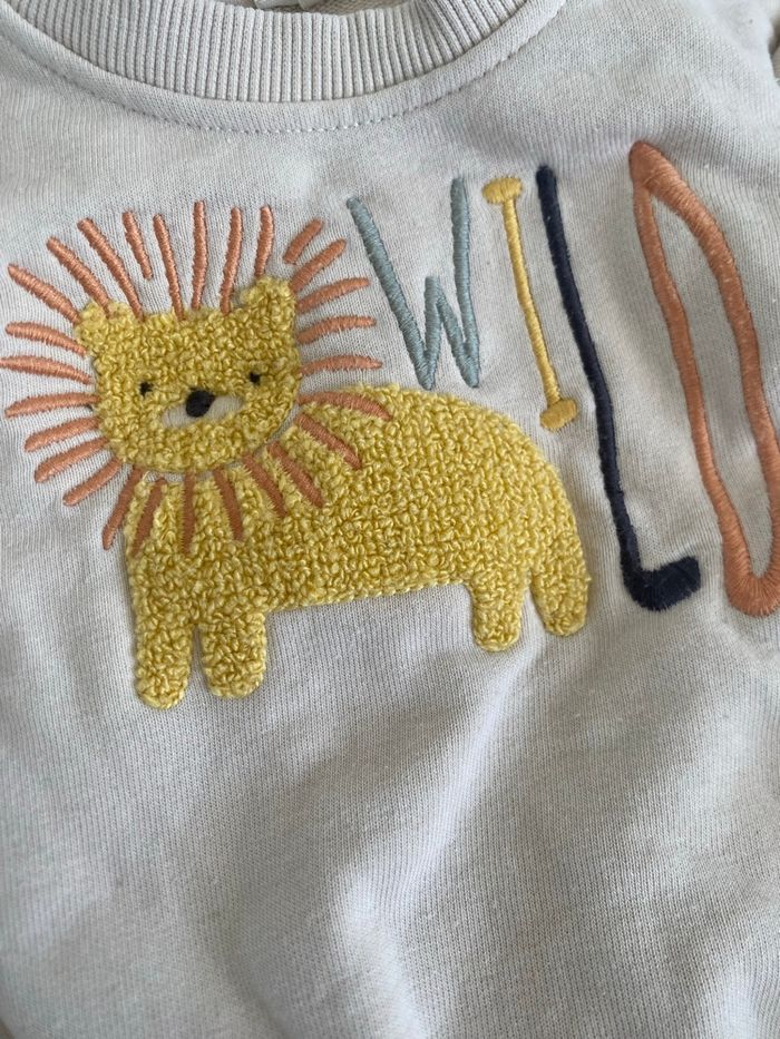 Pull crème/beige broderie lion en très bon état, porter quelques fois, taille trois mois 60 cm Ne pas hésiter à faire des lots de vêtements bébé