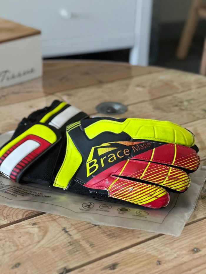 Une paire de gants qui peut encore dépanner, avec barrettes sur les 4 doigts. Taille 8, marque Brace Master 📦 Envoi rapide et soigné N'hésitez pas à m'écrire si vous avez des questions