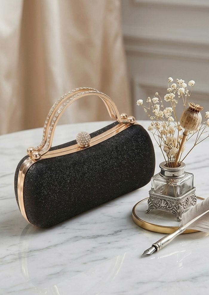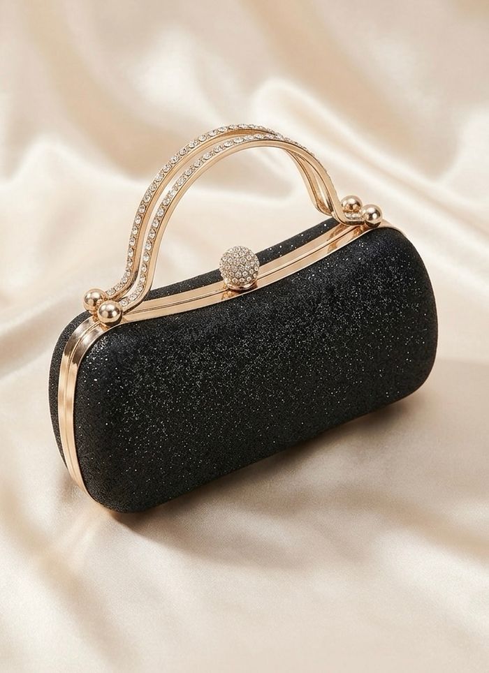 Pochette de soirée Noire manche doré strass Neuf - photo numéro 1