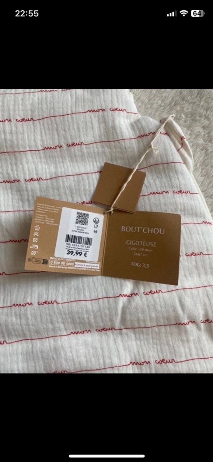 À vendre Jamais utilisé Gigoteuse neuve de la marque Boutchou TOG 3,5 Mais elle n’est pas épaisse au toucher. 0-6 mois Pas de trous Pas de taches Étiquette encore accrochée 39,99€ ⚠️Pas de négociation sur cette article⚠️