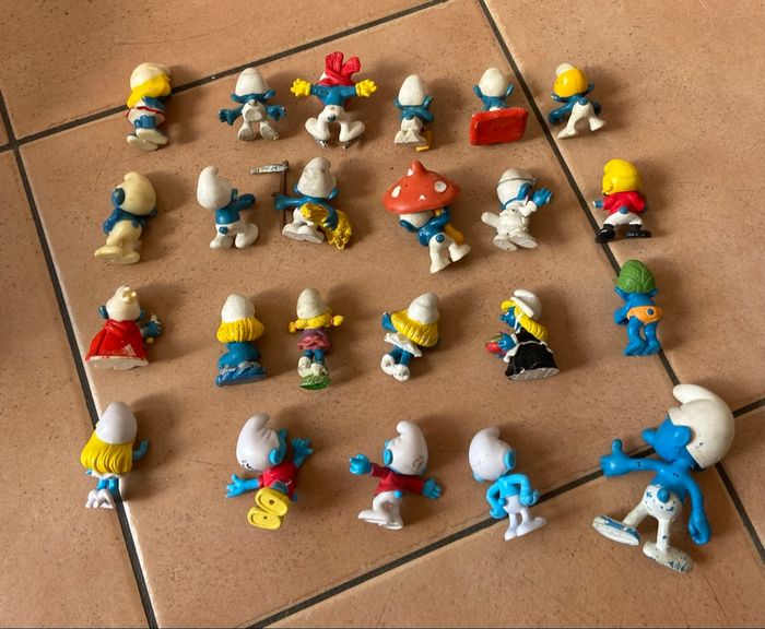 Lot de 23 figurines Les Schtroumpfs 2/3 sont des années 2000 les autres des années 1980, en bon état général Principalement de la marque Schleich Il y en a un qui n’a plus qu’un bras (dernière photo) Ils sont en bon état général Vous achetez ce que vous voyez sur les photos