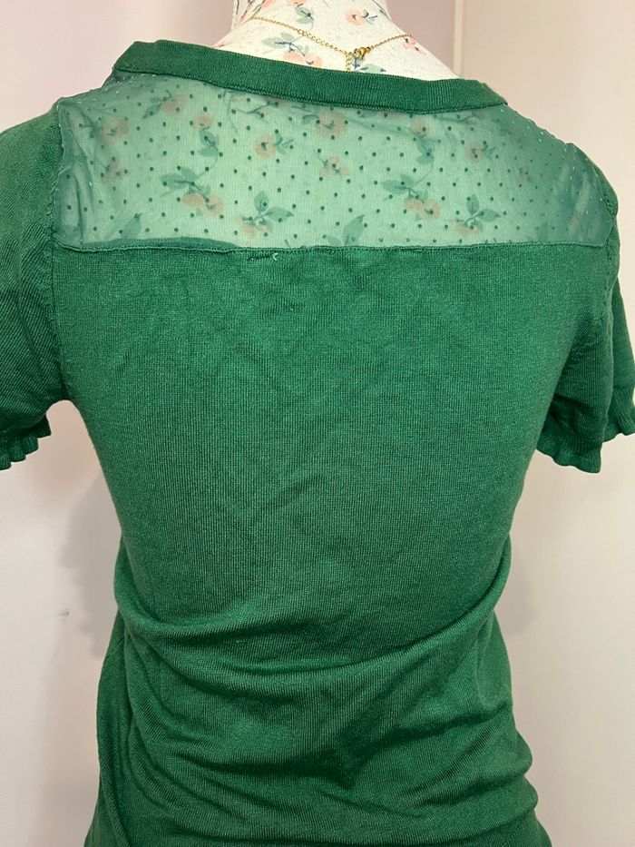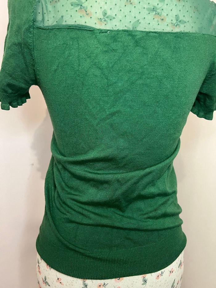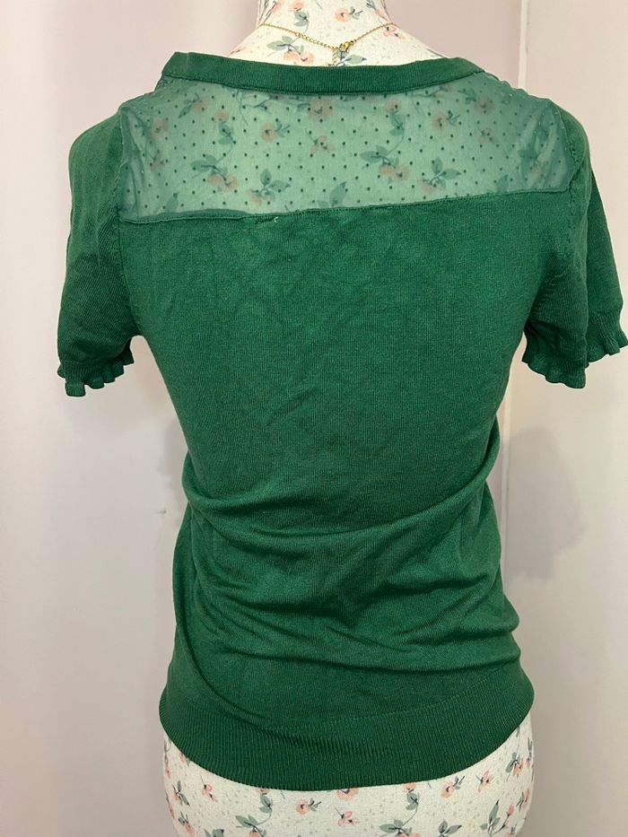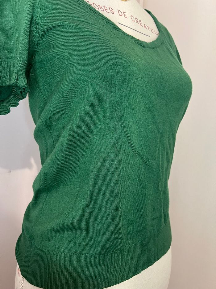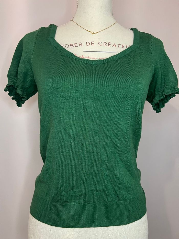Petit haut bordeaux avec des fleurs ajourés et pompons