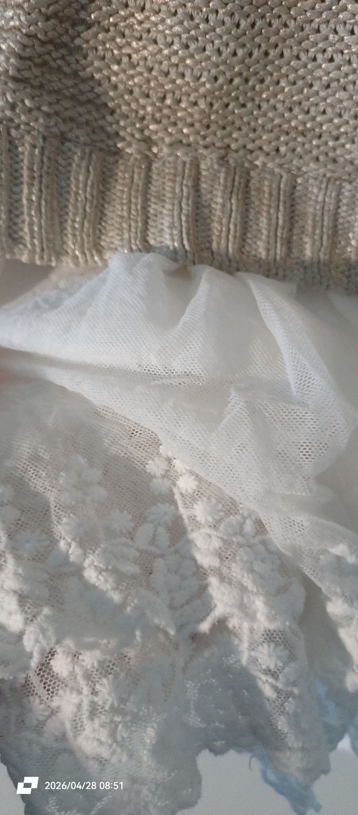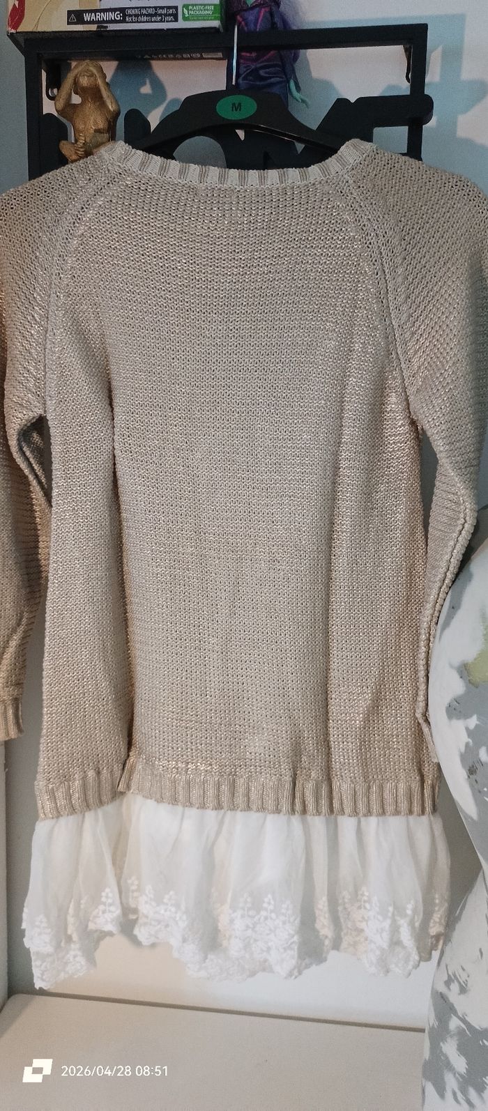 Bonjour Je vend cette robe dorée et blanche. Maille en haut En bas dentelle. Merci