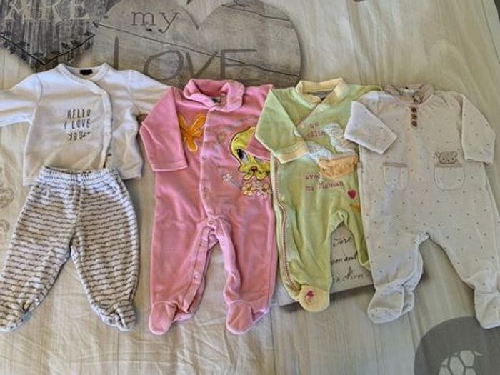 Lot de 4 pyjamas en très bon état taille 3mois marques variées