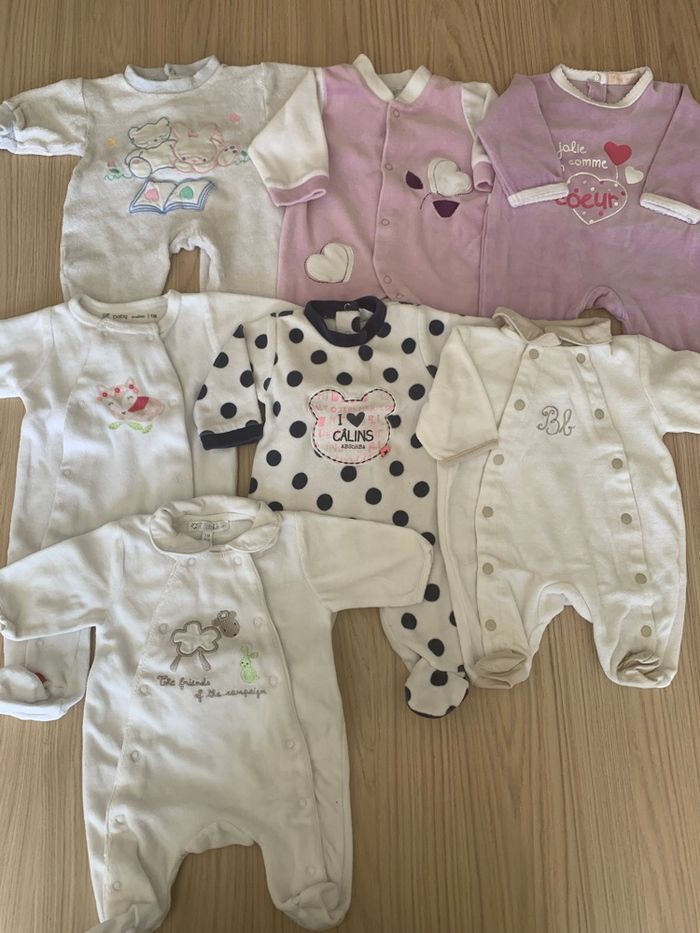 Lot de 7 pyjamas taille 1mois en très bon état, Marques variées