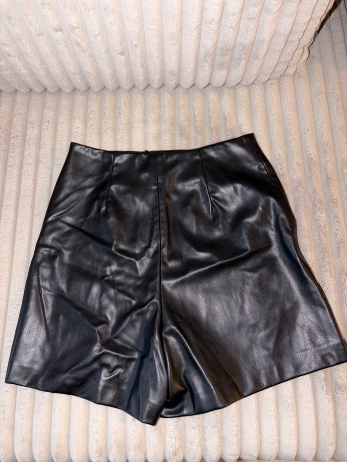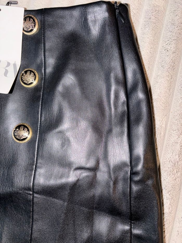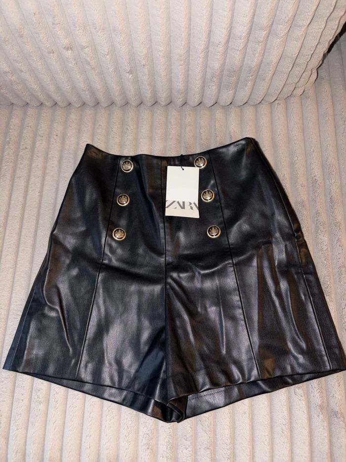 Short jupe simili cuir noir Zara – boutons dorés – taille XS