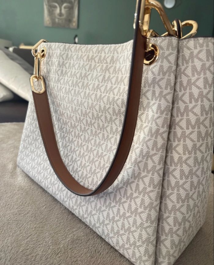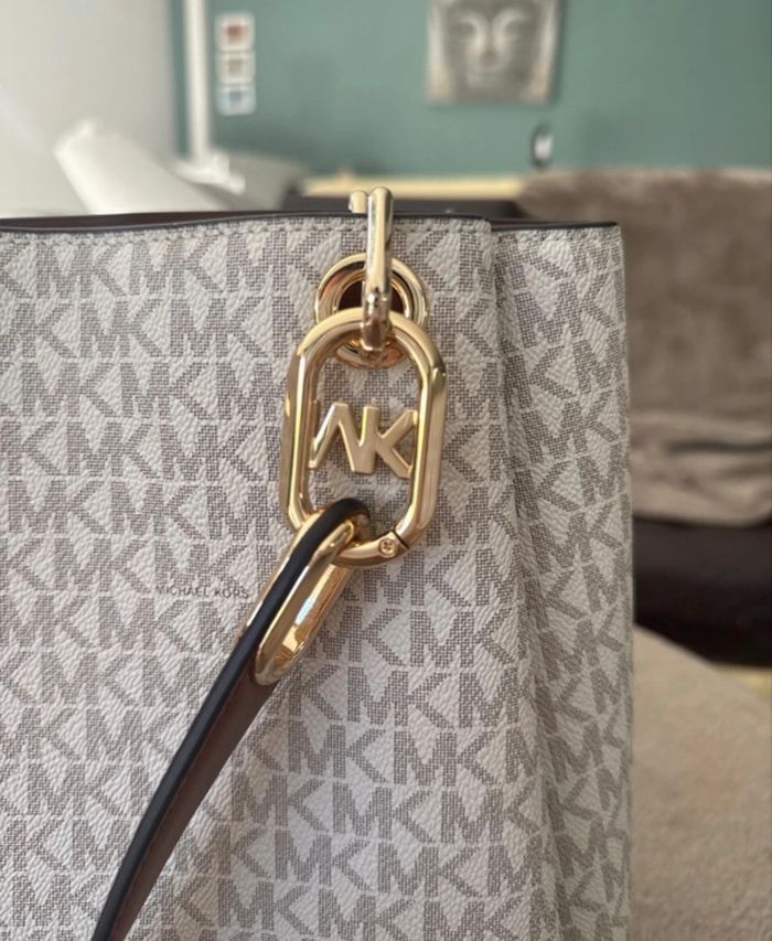 MICHAEL KORS TRISHA NICOLE TRIPLE COMPARTMENT SHOULDER BAG MK VANILLA SIGNATURE - Format médium/large, neuf sans étiquette acheté il y a quelques temps (2023), jamais porté. Suite à de nombreux déménagement je n'ai plus les étiquettes ni même le sac dans lequel il m'a été vendu. Il est authentique voir les photos que j'ai posté, il ne se porte pas en bandoulière uniquement à bras. - Doublures avec noté Michael Kors - Étiquette avec QrCode - Code référence - Coutures nickel - Logos réguliers - Les dorures qui raccordent les anses au sac son de qualité (métal lourd) Prix négociable dans la limite du raisonnable !