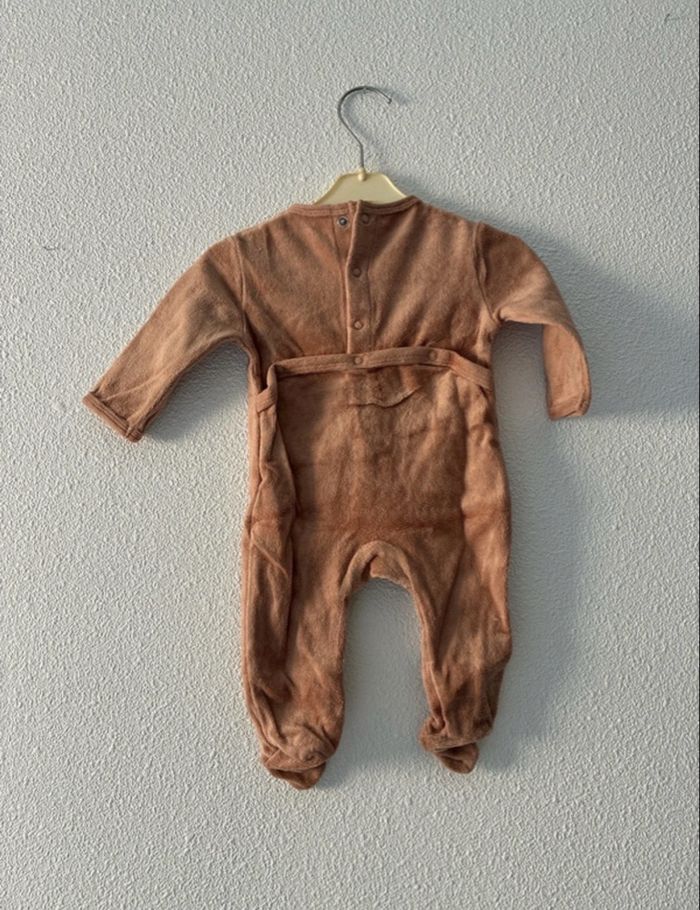 Pyjama en velours blanc motif girafe avec ouverture par devant de marque Noukie’s