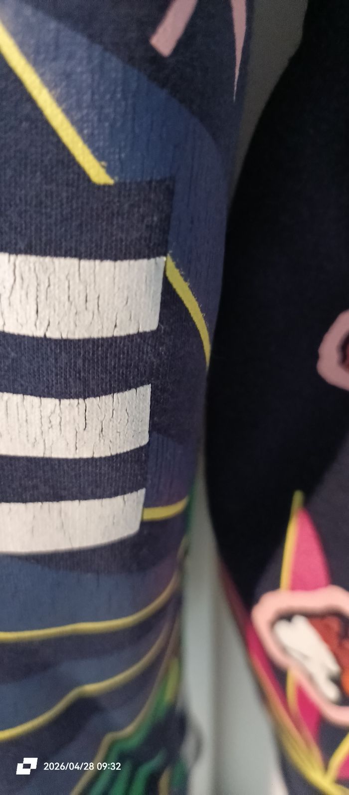 Bonjour Je vend ce pull marine et multicolore chaud. Il a été beaucoup porté Le dessin craquelle. Merci