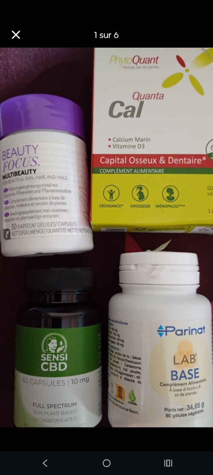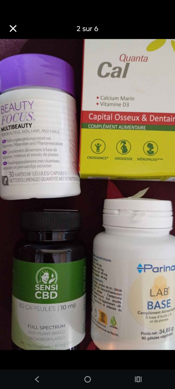 Soins beauté divers Tout est neuf Vendu a l article les prix varient Lab base 15€ Quanta Cal 10€ Beauty Focus 12€ Sensi cb 20€ N hésitez pas a me dire le produit souhaité
