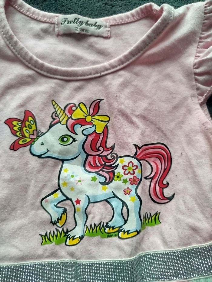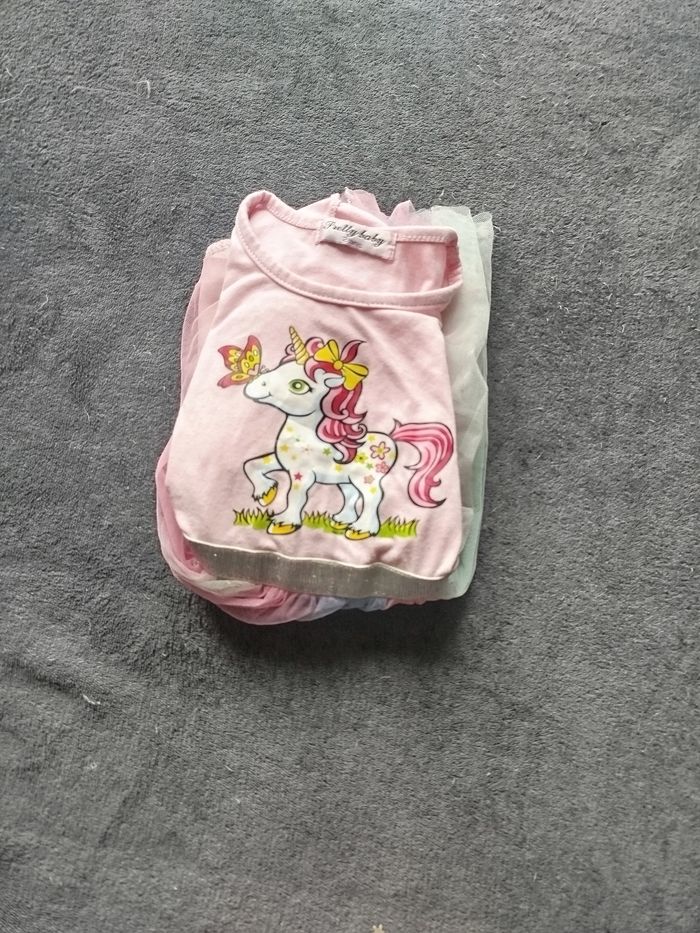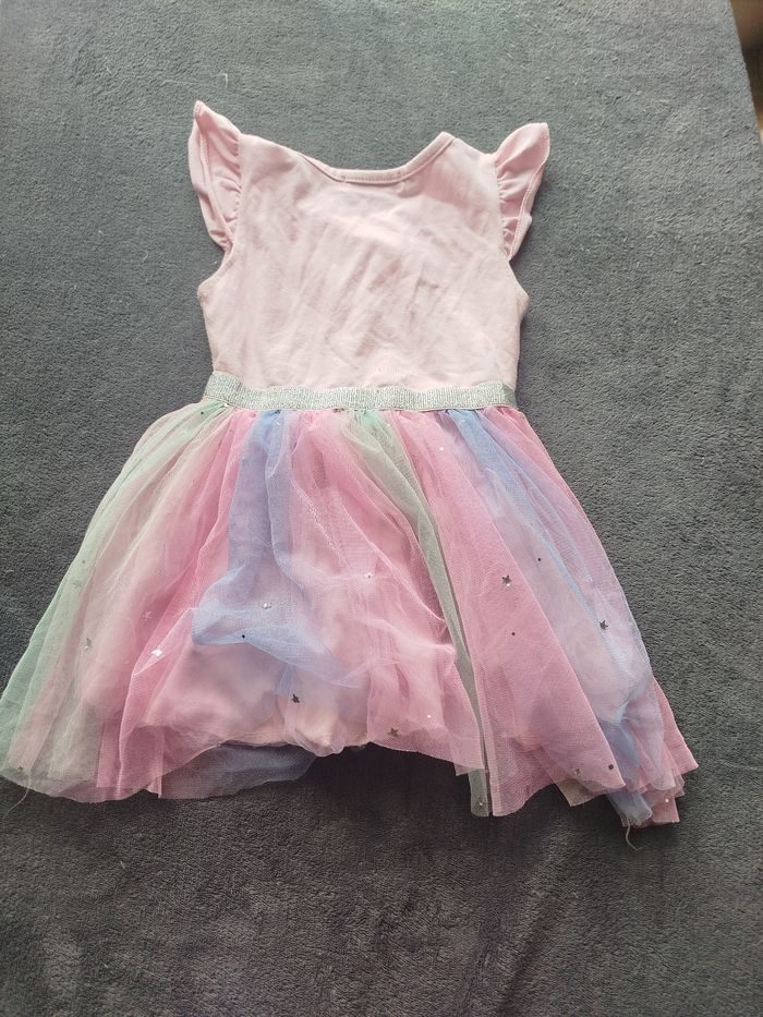 Robe licorne rose à paillettes – Jupon tulle multicolore – 2 ans