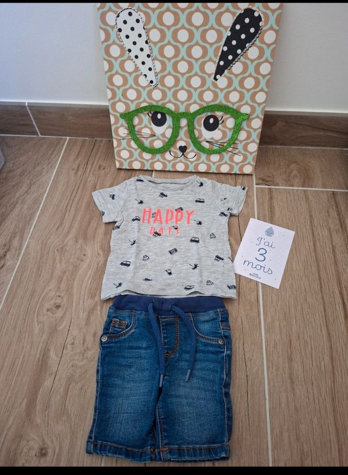 Vends ensemble 3 mois t shirt et bermuda Taille 3 mois Marque : Tape a l'œil et Pat & Ripaton Très bon état