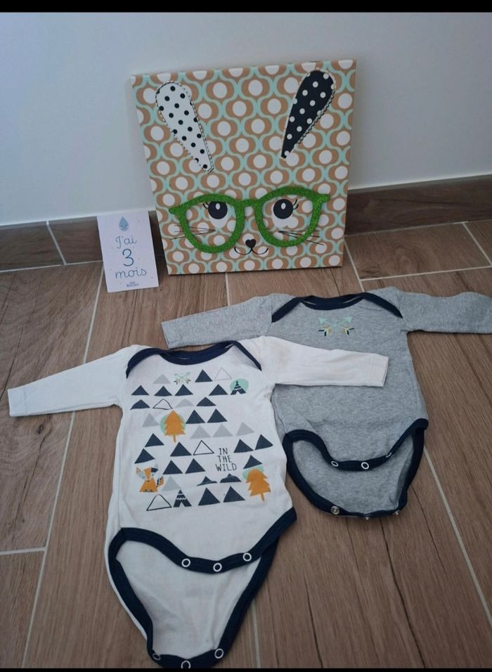 Vends lot de 2 bodies manches longues Taille Super U Taille 3 mois Très bon état